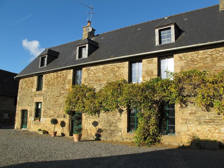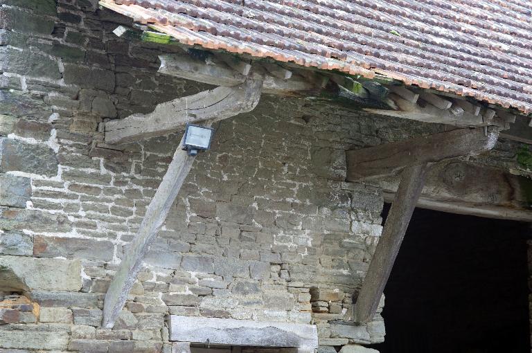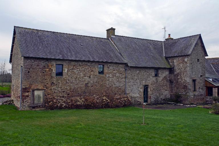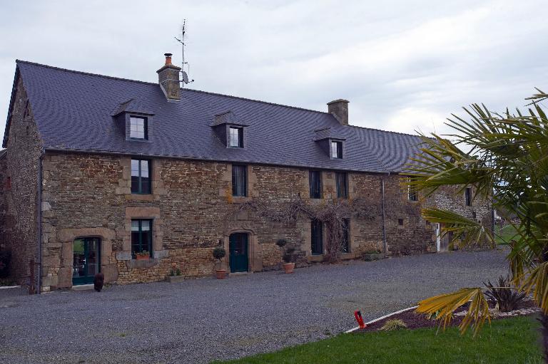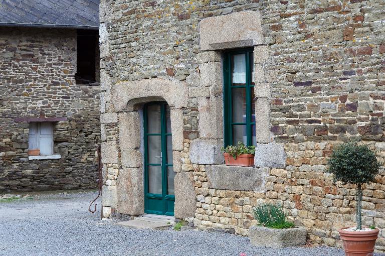 L'élévation sud à travées est irrégulière. Elle est percée d'une porte moulurée d'un tore à listel et d'un cavet et dont le linteau en accolade est orné de crochets et d'animaux en bas-relief avec un blason muet ; et d'une porte en anse de panier avec un décor de cercles sur le linteau. Les linteaux des autres ouvertures présentent un décor de boules sur le chanfrein, de même sur les dépendances.