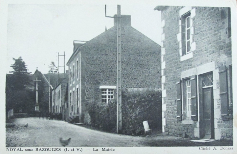 L´enseignement, avant tout religieux, était dispensé jusqu´à la révolution française par les prêtres et les familles nobles de Noyal-sous-Bazouges, dans l´ancienne église. T. Chalmel, dans son livre sur Noyal-sous-Bazouges, précise que l´absence de signatures sur les registres paroissiaux montre que l´instruction n´a pas vraiment porté ses fruits. A la fin du 18e siècle, des citoyens semblant montrer un minimum d´instruction sont choisis pour assurer l´enseignement des enfants. Cette organisation ne dure que quelques années. L´enseignement reprend vers 1830, avec pour instituteur officiel Monsieur Rondin, un ancien séminariste né à Noyal-sous-Bazouges. Il dispense ses cours dans une chambre de l´ancien presbytère, bâtisse du 16e siècle située dans le bourg et connue aussi sous le nom de maison des Plaids. En 1849, la mairie décide d´acheter un terrain pour la construction d´une Mairie-Maison d´école dédiée à l´instruction des garçons. C´est Monsieur Anger de la Loriais qui en dessine les plans. Cet architecte a également dessiné les plans de la nouvelle église en 1855. L´entrepreneur Launay est chargé des travaux. Au départ, il est prévu une salle de classe pour une cinquantaine d´élèves au rez-de-chaussée et une salle pour la Mairie à l´étage. En 1883, une nouvelle salle est aménagée au rez-de-chaussée et séparée de l´autre par une cloison en bois. Un jardin attenant à l´école est acheté en 1899 et en 1909, une cour est aménagée et un préau et des toilettes sont construits. Une lettre au préfet datée de 1909 justifie ce projet : "J'ai l'honneur de vous faire connaître que l'école de garçons de Noyal-sous-Bazouges est dépourvue de cour et de préau couvert et que ses privés sont à la fois en fort mauvais état et en nombre insuffisant. Pour remédier à cette situation, le conseil municipal a, à se séance du 23 avril dernier, approuvé les plans et devis de construction : d'une cour sensiblement étroite il est vrai, mais qui présentera plus de sécurité que la route où les enfants prennent actuellement leurs récréations ; d'un préau de 52m² de surface ; de privés avec fosse étanche, comprenant quatre compartiments et quatre urinoirs." En 1921 et 1922, de gros travaux de rénovation ont lieu. Les boiseries et les serrureries sont changées, les peintures, tapisseries et planchers sont refaits ainsi que d´autres travaux de remise en état du bâtiment qui montrait des signes de vétusté. Une école privée pour garçons est construite en 1932 dans le bas du bourg, mais l´école publique reste dans ses locaux d´origine jusqu´en 1990, date de fermeture définitive de l´école. Aujourd'hui, la mairie et une petite bibliothèque occupent l'édifice.
