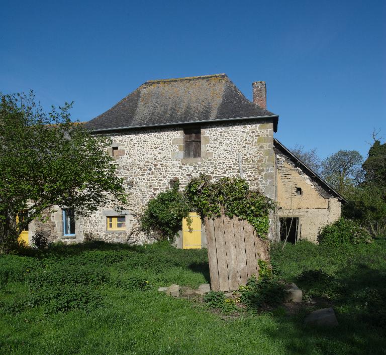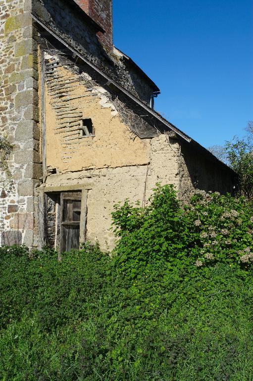 Exceptée la dépendance élevée en terre, selon la technique de la bauge, les bâtiments sont construits en moellon de granite et de schiste et ont des encadrements en pierre de taille de granite ; les chaînages d’angle du bâtiment principal sont également en pierre de taille de granite. La dépendance en terre n’a pas subi de modification, ses ouvertures sont des carrées en bois. Un autre petit bâtiment emploie de la terre, il est accolé en appentis au bâtiment principal, il est en terre en partie basse et en pan de bois en partie haute. Le matériau de couverture est l’ardoise.