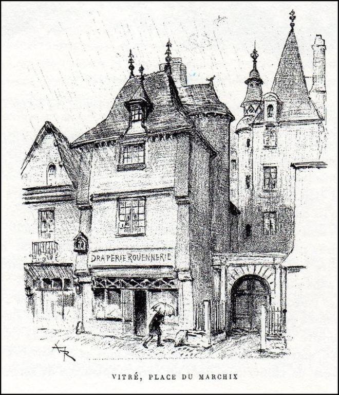 Ce bâtiment a été transformé dans la première moitié du 19e siècle suite aux préconisations imposées par le plan d'alignement de 1842. Un dessin d'Albert Robida, publié en 1891 dans le volume "La Bretagne" de La Vieille France, nous montre qu'il avait déjà été remanié. En effet, le porche n'existe plus ; le rez-de-chaussée est fermé et aligné sur les étages.