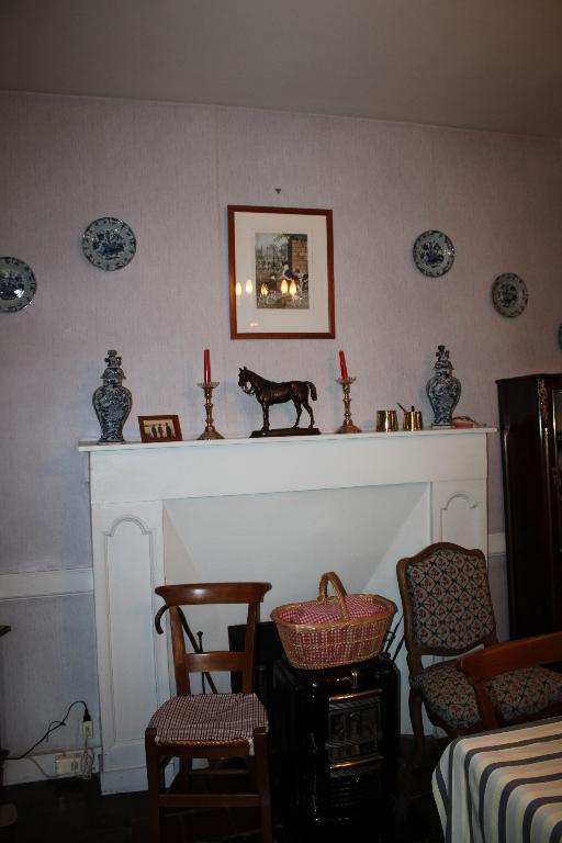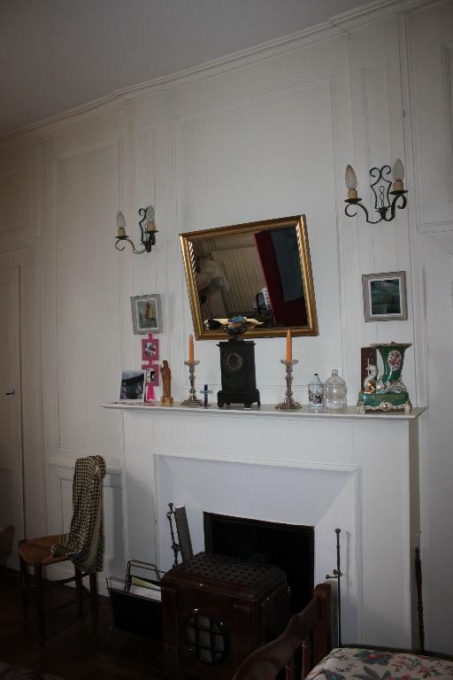 - Murs ouest : cheminée en bois, dalle de foyer en carreaux de terre cuite.