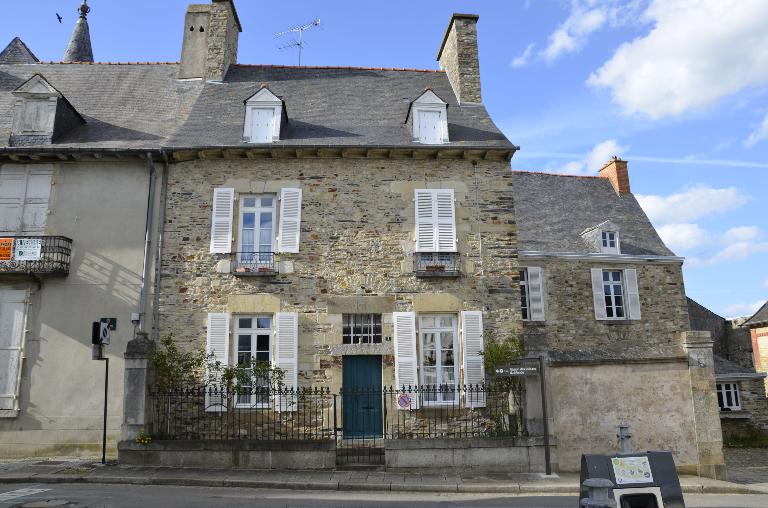 - RDC : Une porte d’entrée en bois, en tiercé, avec un linteau en granite, jambages en pierre de taille en grès ; surmontée d’une imposte vitrée fixe avec un linteau en granite portant une date (1820) et des jambages en pierre de taille en grès.