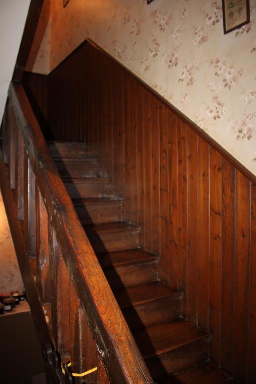 - Distribution verticale assurée par un escalier rampe sur rampe à limon porteur, situé au nord-ouest du corps de logis principale. Il dessert les niveaux, de la cave au deuxième étage.