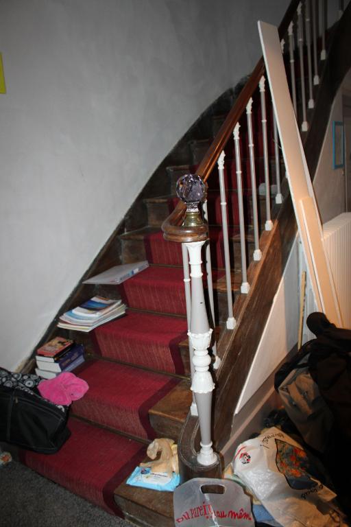L'escalier suspendu à limon porteur et balustres en fer appartiendrait à ce réaménagement.