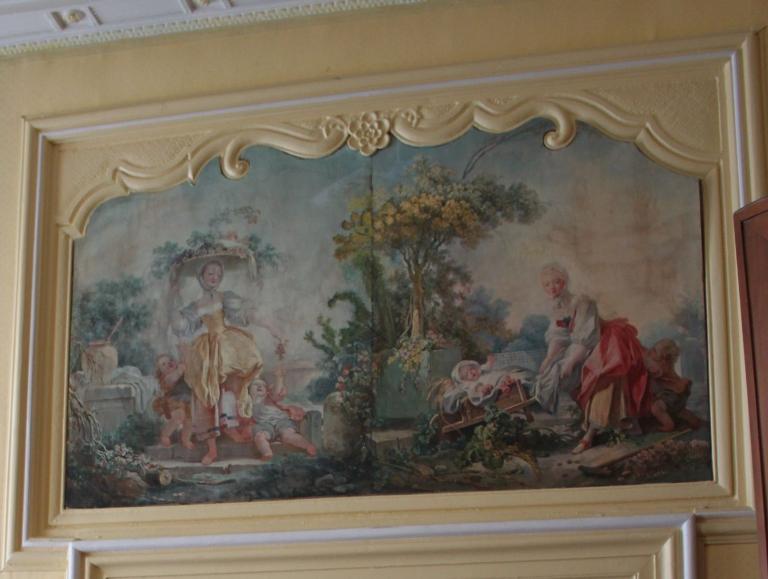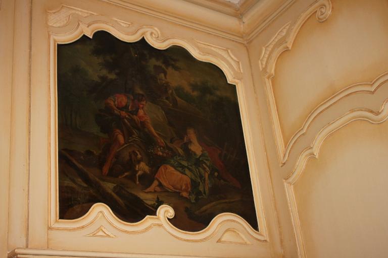 Bien que peu d'éléments nous permettent de formuler une hypothèse quant à la datation du bâtiment, il semble qu'il ait été construit dans le courant du 18e siècle, probablement au milieu de ce siècle. Des lambris et des décors de cheminées de style Louis XV, décorant les pièces du premier niveau (le deuxième niveau n'a pas été visité), permettent d'avancer cette hypothèse. En particulier la pièce sud-ouest dont les murs, couverts de boiseries aux lignes courbes, forment un galbe pour l'espace accueillant la cheminée. La hotte de cheminée s'intégrant aux boiseries, présente sur ses piédroits des entrelacs de végétaux. Un miroir, surmonté d'un décor peint, habille davantage la hotte. Ce tableau est une copie d'une scène de François Boucher ("Pensent-il au raisin", 1747), l'un des maîtres du rococo. De même le linteau de la cheminée se tord d'un galbe sur le plan vertical et horizontal. L'ensemble, linteau et jambages, sont couverts de végétaux. Les entrelacs de végétaux, les lignes courbes et les miroirs surmontant la tablette de cheminée se retrouvent dans les deux autres pièces. Une "scène galante", caractéristique de la première moitié du 18e siècle pare la hotte de la pièce sud-est.