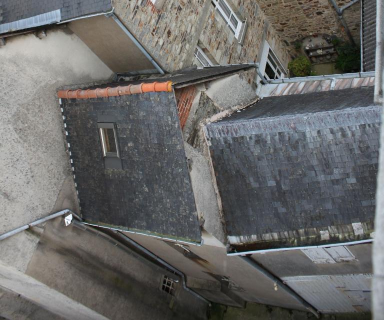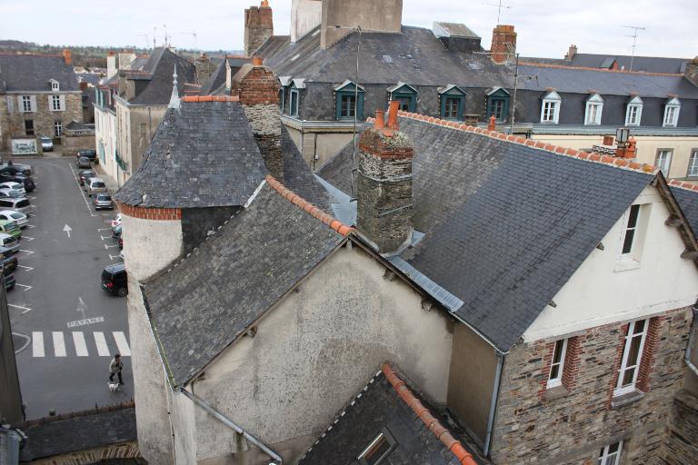 La simple visite des extérieurs, modifiés au cours des siècles, rend la datation difficile. Cependant quelques éléments concourent à dater ce bâtiment du 16e siècle. Les maisons en pan-de-bois de Vitré ont été construites entre le 15e et le 17e siècle, et plus majoritairement au 16e siècle. De même le parcellaire de la place semble s'être couvert de bâtiments essentiellement lors de ce siècle. L'encorbellement de la façade à pignon sur rue oriente cette datation et plus encore la tour d'escalier à demi-hors œuvre, qui permet d'exclure le 17e siècle.