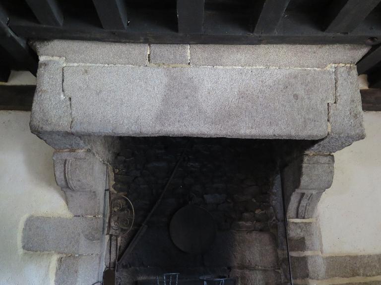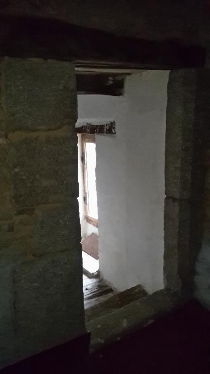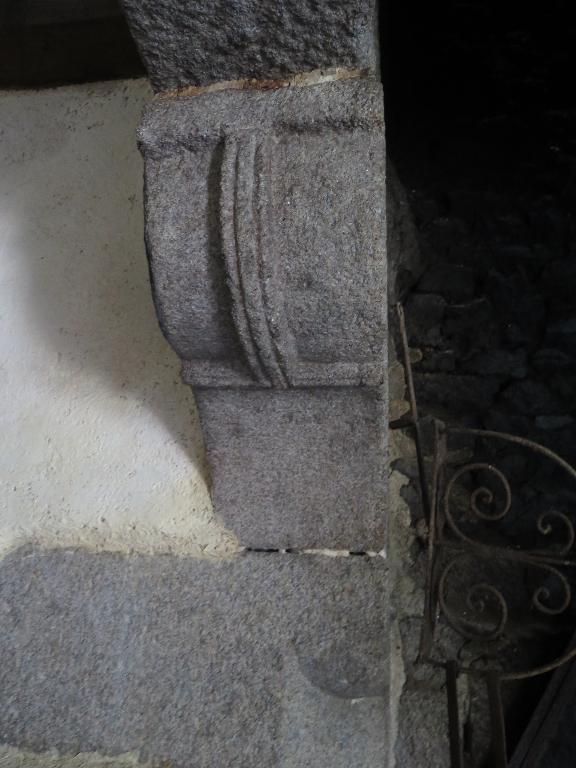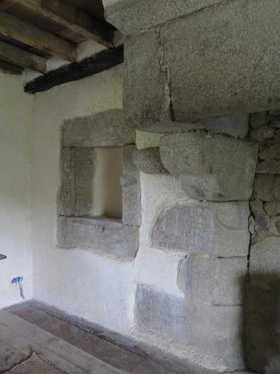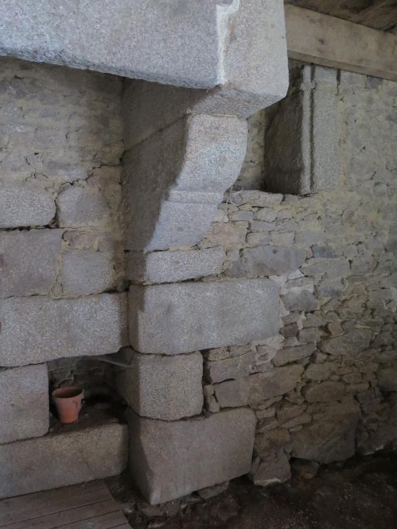A droite de la cheminée principale (salle), il y a une ouverture menant au cellier, en pierres de taille et linteau en bois et juste au-dessus de cette ouverture, la même ouverture donnant dans la chambre haute. Les pierres de taille de cette ouverture haute sont du côté du grenier ce qui indique qu'un escalier arrivait directement sur cette ouverture. D'ailleurs, une trace de petite ouverture visible de l'extérieur pourrait être le vestige d'un jour qui éclairait la montée de l'escalier.