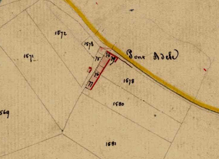Aujourd'hui disparue, une cuisine devait exister auparavant à gauche de la porte d'entrée. Cette hypothèse vient du fait de la discontinuité du chainage d'angle à l'arrière et par le cadastre napoléonien de 1826 où l'on voit bien que la maison était beaucoup plus longue. Cette cuisine devait communiquer directement avec la salle.