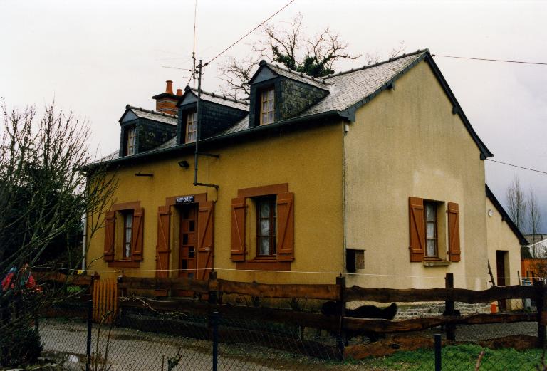 Sur la façade, la porte est encadrée par deux fenêtres. Les linteaux de la porte et des fenêtres au rez-de-chaussée sont en bois. Les appuis des fenêtres sont aussi en bois. La fenêtre sur pignon Sud-Ouest est encadrée par du béton.