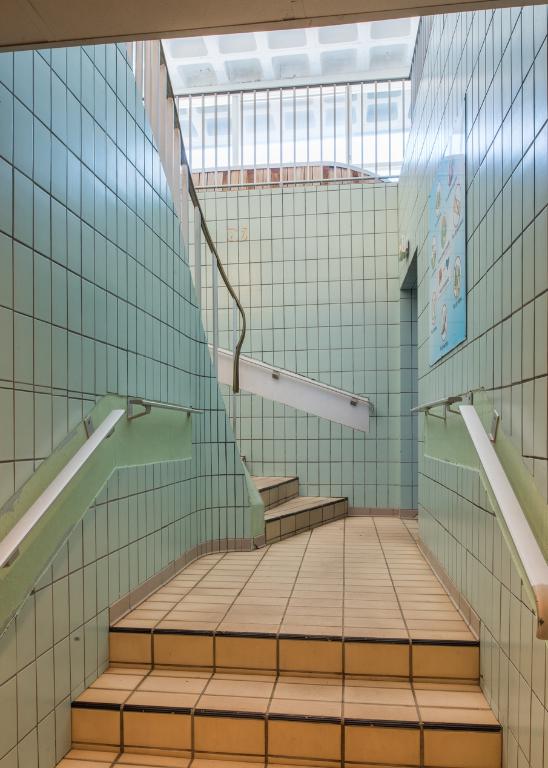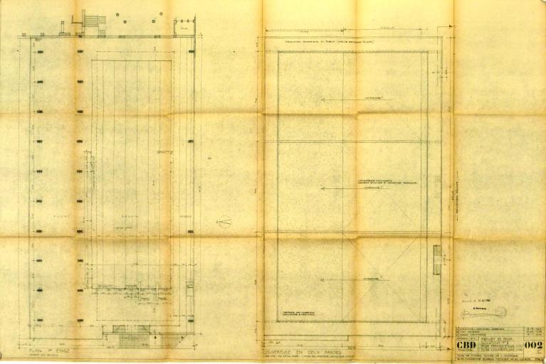 Selon l'avant-projet de juillet 1963, le nouveau bâtiment devait être implanté à la place de l'ancien, mais en empiétant, d'une part, sur le casino, puisqu'il nécessitait la démolition de la salle des fêtes, et d'autre part, sur l'escalier du boulevard Wilson à la plage, dont la largeur serait réduite à 1,50 m. Sa longueur totale serait de 66 m et sa largeur au niveau du rez-de-chaussée de 30,25 m, une ligne de poteaux supportant le plancher et la toiture terrasse formant passage couvert pour le public. Un sous-sol partiel devait accueillir une salle de service, 2 vestiaires, une buanderie, une salle des pompes et des filtres ; le rez-de-chaussée le hall d'entrée et la caisse, les vestiaires femmes et hommes avec sanitaires, la salle de chaufferie et le stockage du mazout ; le 1er étage la piscine de 50 m x 17,50 m avec six lignes d'eau et plongeoirs de 1 et 3 m, des gradins pour spectateurs le long du mur aveugle côté boulevard du président Wilson. La toiture devait comporter une partie ouvrante en charpente métallique et panneaux translucides au-dessus du bassin (3 travées de 18 x 21 m). Enfin, le mur du fond côté sud est entièrement revêtu d'une composition monumentale en mosaïque de pâte de verre, conçue par le plasticien français d'origine suisse Charles Gianferrari et mise en œuvre par l'entreprise de carrelage malouine Degano.