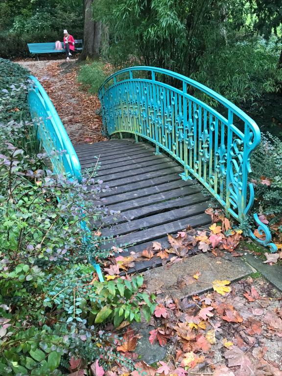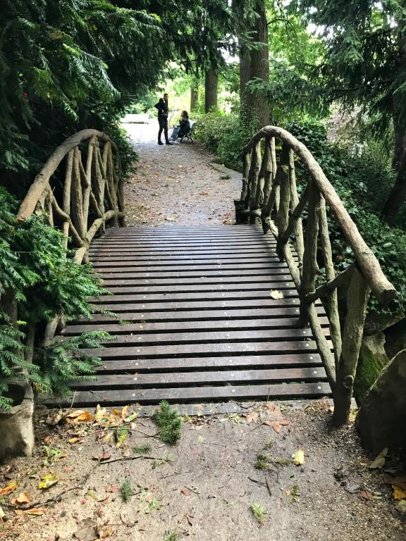 Ce parcours pittoresque est aménagé par l'ingénieur horticole M. Marc et le rocailleur rennais M. Neveu qui réalisent en béton, imitant l'aspect du bois ou de la roche, des éléments tels que des rochers artificiels, des emmarchements, plusieurs ponts et une grotte, auxquels sont ajoutés cours d'eau et deux cascades. Une île artificielle est aménagée sur le parcours du ruisseau sinueux qui coule des cascades, accessible par un pont, elle est aujourd'hui discrètement dissimulée dans la végétation. En 1904, la rivière "anglaise" du projet Bühler qui serpentait au sud du jardin paysager (le cours d'eau était resté inachevé) est supprimée à l'occasion de ces nouveaux aménagements.