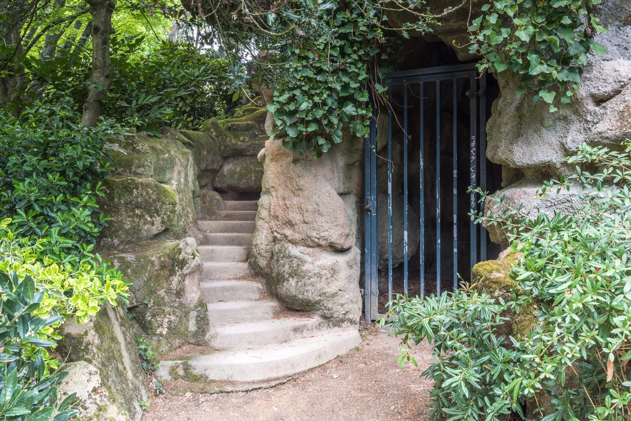 En novembre 2010, en raison de risques de chute d'éléments de décor, les accès à la grotte artificielle sont fermés (par des grilles à barreaudage), et envahis par le lierre, en attendant une rénovation complète de cet espace. Des cartes postales anciennes montrent un intérieur un peu sombre dallé de grandes pierres plates entre lesquelles ruisselle de l'eau.