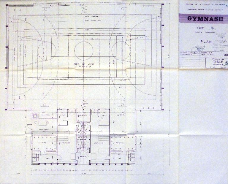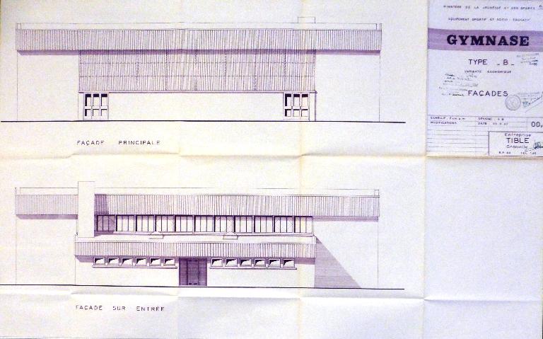 Entreprise Tible, La Barberie, Granville. Les deux gymnases type B2 du lycée Kerichen figurent dans sa liste de références datée janvier 1964. Spécialiste des charpentes métalliques