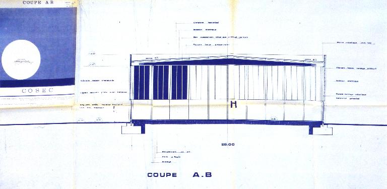 Gymnase de type COSEC conçu par les architectes Ph. Blanchet et P. Hwang et l'entreprise Pouteau, comprenant une salle H de 40,40 m x 25 m, un local matériel et une chaufferie. Un foyer et une salle d'activités destinés au Cercle Paul Bert sont ajoutés en façade sud en 1985.