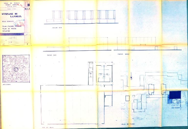 Le 26 mars 1973, le conseil municipal approuve le projet d'un COSEC au groupe scolaire Le Landrel (aujourd'hui Guillevic). L'arrêté d'approbation technique est signé le 31 octobre 1973, et une subvention de 500 000 F au taux de 33,78% attribuée le 9 mai 1975. La réception provisoire est prononcée le 15 décembre 1975. Le 12 septembre 1983, la municipalité décide la construction d'un foyer-bar de 30 m2 et d'une salle d'activités de 100 m2 contigus au gymnase, selon un projet conçu par le service des Bâtiments communaux. Les travaux débutent le 21 janvier 1985 et s'achèvent le 26 juillet.