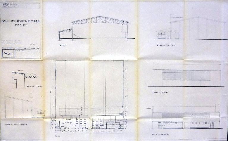 Gymnase de type B2 30 m x 20 m avec annexes et gradins.