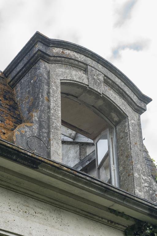-Toiture à la mansarde avec lucarnes à ailerons surmontées de clés