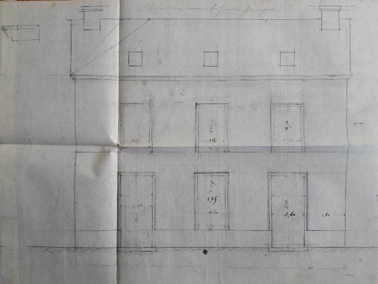 Le bâtiment se développe en R+1 plus combles. La façade sur la rue de la Poste est composée de cinq travées régulières avec encadrements de baies en granit. Toiture en croupes avec deux souches de cheminées en brique de modénatures différentes. Le bâtiment était à l'origine composé de trois travées. Les deux travées au sud résultent d’un agrandissement de 1911 par l’architecte J-M. Laloy (1851-1927). On peut encore lire ces modifications en toiture aujourd’hui.