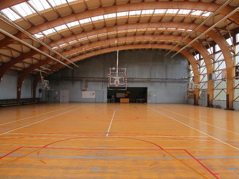 Construit dans l'angle sud-ouest du terrain de l'ASPTT, le premier bâtiment comprend un vaisseau principal de 45,50 m x 27,00 m constituant la salle omnisports proprement dite, et sur le pignon nord-ouest, un bâtiment annexe de 28,35 m x 9,70 m abritant les services sanitaires (douches, w.c.), le hall d’entrée, les locaux des arbitres, les guichets, le dépôt de matériel et la chaufferie. L'ossature de la salle est une charpente en lamellé-collé avec ancrages et tirants en béton armé. La couverture est en feuilles ondulées préfabriquées en chlorure de polyvinyle avec bandes opaques et translucides alternées. Le logement du gardien est édifié en face, au nord-est. En 1979, on lui adosse de nouveaux locaux : foyer (142 m2), salle de réunion (88 m2), salle de tennis de table (158 m2) et salle d’éducation physique (195 m2). Les tennis couverts sont implantés plus au nord-est en 1983.