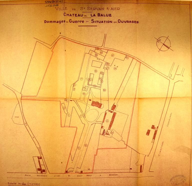 L'architecte en chef des Bâtiments civils et Palais nationaux, Louis Arretche, par ailleurs architecte en chef de la reconstruction de Saint-Malo en cours d'achèvement, est choisi pour dresser les plans. De l'ancien domaine, il ne conserve que la malouinière proprement dite mais s'efforce de sauvegarder, autant que possible, les arbres et les cheminements existants.