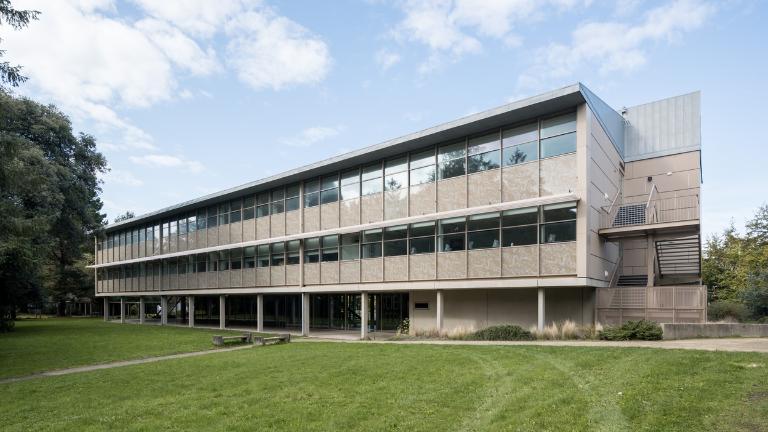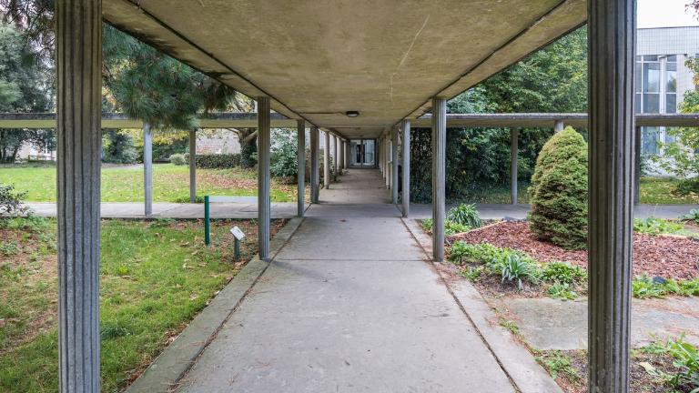 A l'inverse, en 2010, pour le nouveau bâtiment scientifique (bâtiment B6), l'architecte Michel Grignou renoue avec le plan rectangulaire et les tons marrons des façades - certes bardées de métal et de panneaux solaire utilisés comme brise-soleil. Il manifeste ainsi un souci d'intégration au bâti existant que conforte le choix d'une élévation r+2 et de pilotis en rez-de-chaussée. Ces derniers permettent en outre d'articuler harmonieusement le préau aux galeries de circulation.