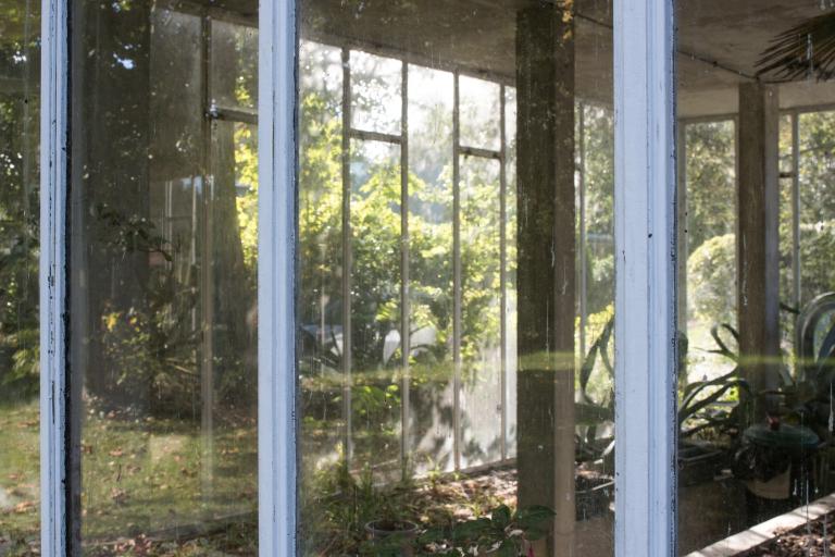 Menuiseries extérieures en niangon. Revêtement de sol en grès cérame.