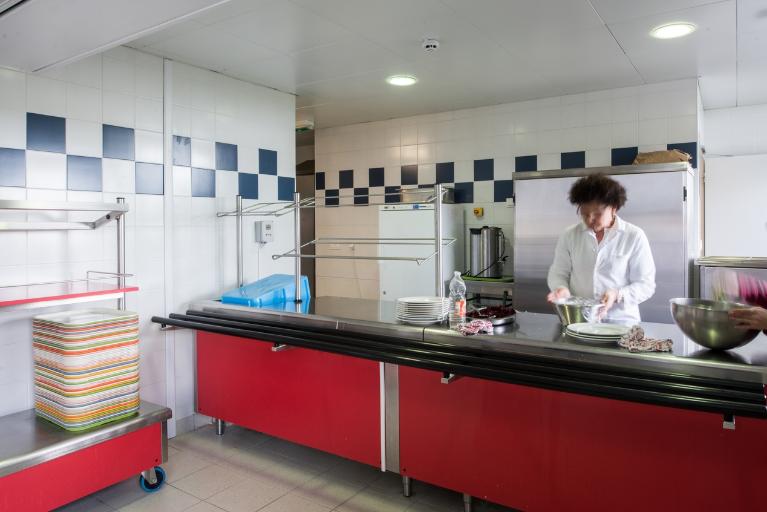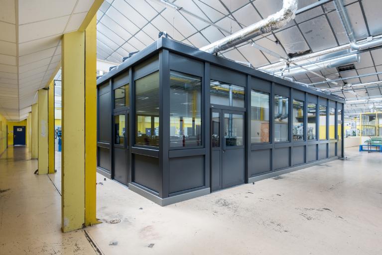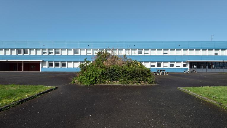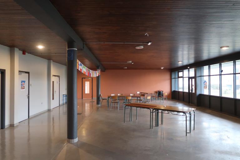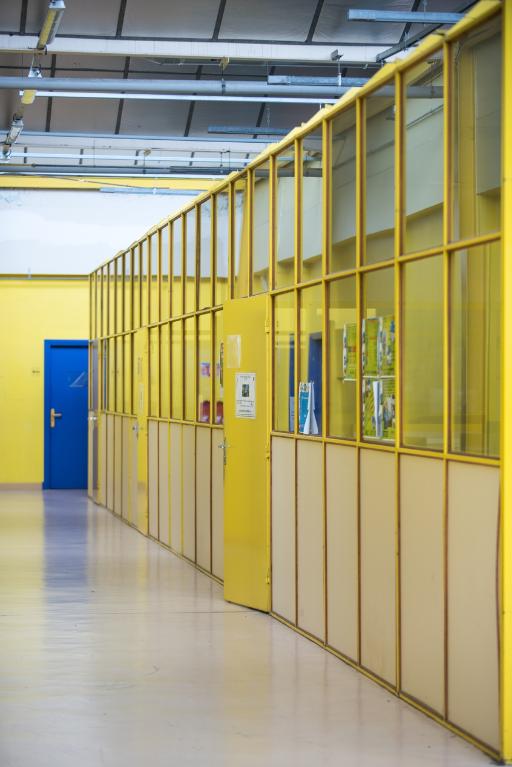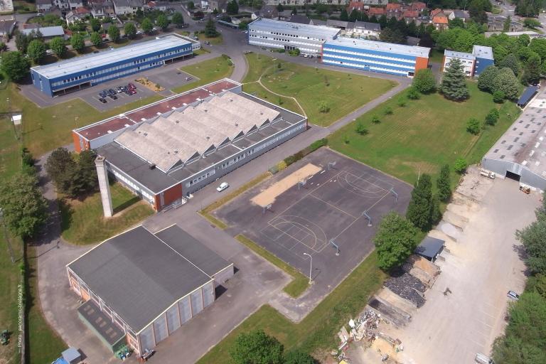 Au-delà des ateliers se situent le gymnase et le plateau sportif.