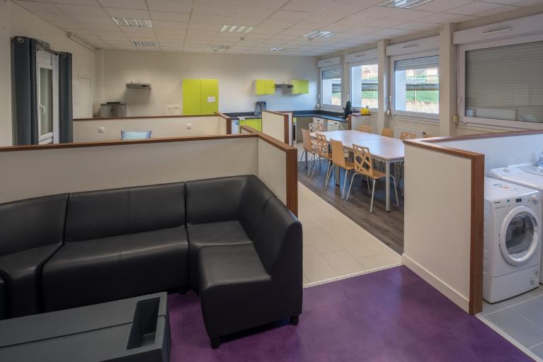 A gauche de l'entrée, est implanté l'internat qui dont les caractéristiques constructives sont communes avec l'externat. Il est cependant composé de deux barres mitoyennes décalées, d'une longueur totale d'environ 110m. Son élévation est de trois niveaux. A la jonction des deux barres se situe une troisième cage d'escalier. Au centre de la façade sud-ouest est implantée l'entrée du foyer des internes surmontée d'un auvent. Elle donne aujourd'hui accès aux ateliers restauration. L'internat accueille en effet aujourd'hui de nombreux ateliers et classes, ainsi que le GRETA (formation pour adultes).
