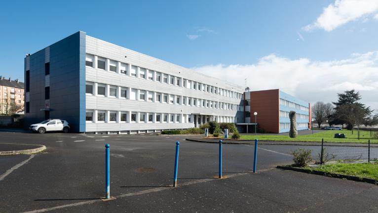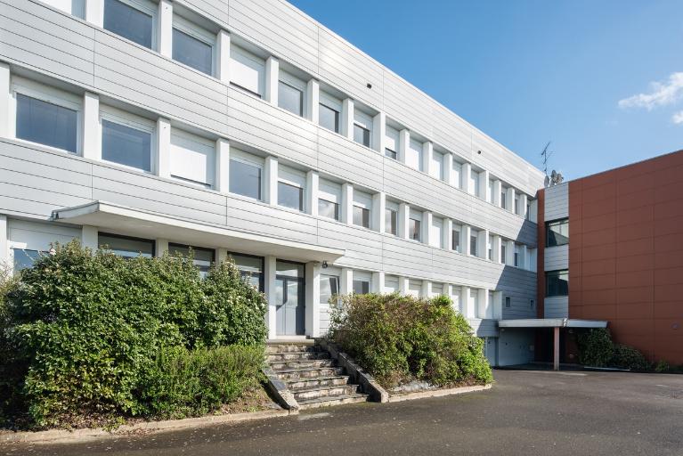 A gauche de l'entrée en allant vers le Sud les services administratifs et la conciergerie occupent un bâtiment à rez-de-chaussée et toit-terrasse, rattaché au bâtiment d'externat de R + 1 (...) d'orientation sud-est - nord-ouest. Cette barre tramée, symétrique, à ossature poteaux poutres planchers en béton armé, abrite salles de classe et laboratoires, desservis par des escaliers placés aux deux extrémités et des couloirs centraux. Elle est couverte de toit en Zinc à faible pente.