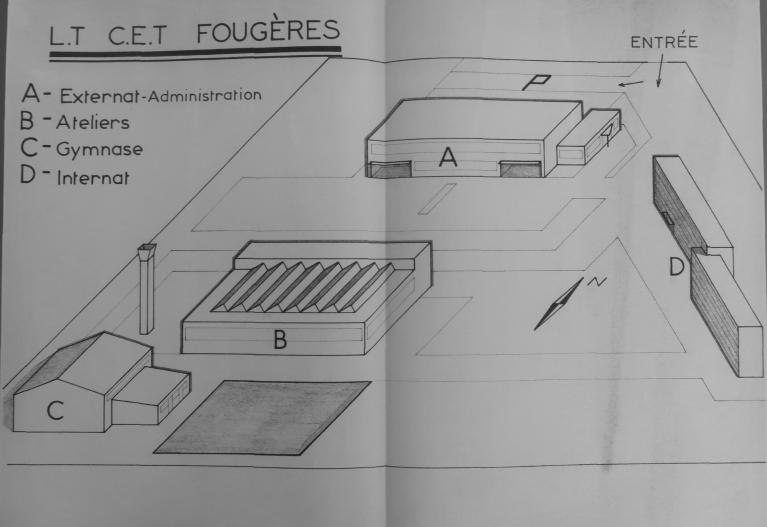 En janvier-février 1966, l’État et la Ville de Fougères signent une convention commune de financement pour la construction d'une "cité scolaire polyvalente constituée par la juxtaposition de deux établissements (...) "dont un lycée de second cycle technique mixte avec collège d'enseignement technique annexé avec internat masculin commun dont le programme pédagogique (...) prévoit un effectif de 714 élèves".