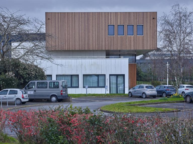 Ces innovations accompagnent un retour à un type de bâti un temps délaissé : celui de la barre rectangulaire avec des façades tramées, aux vertus bien connues en termes de modularité. La qualité plastique de l'ensemble doit beaucoup aux matériaux (verre, bardage en mélèze de trois teintes différentes, calepiné lame par lame) mais aussi au choix fort du porte-à-faux placé au-dessus de l'entrée, qui permet de rompre avec la linéarité inhérente aux barres.
