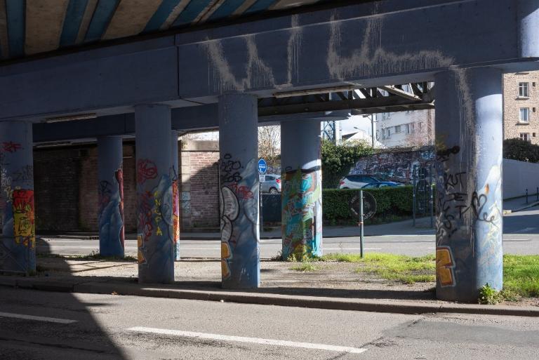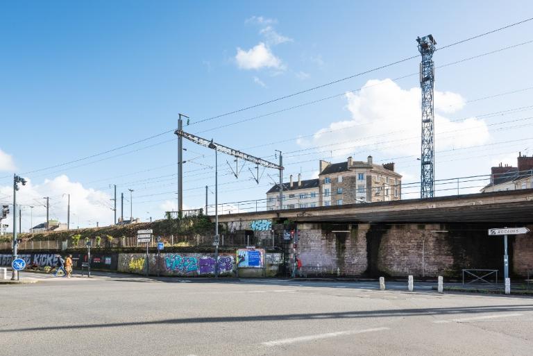 Le pont de Nantes est construit vers 1860 dans le cadre du prolongement de la ligne de chemin de fer reliant Rennes à Brest et Saint-Malo. Dernier ouvrage ferroviaire du tronçon principal avant les embranchements avec la ligne desservant le sud de la région, il fait rapidement l'objet de projets de modernisation et d'élargissement dès la fin du 19e siècle. L'octroi de la rue de Nantes, construit dès1855, jouxte le pont au sud-est, marquant la frontière entre la ville et son faubourg.