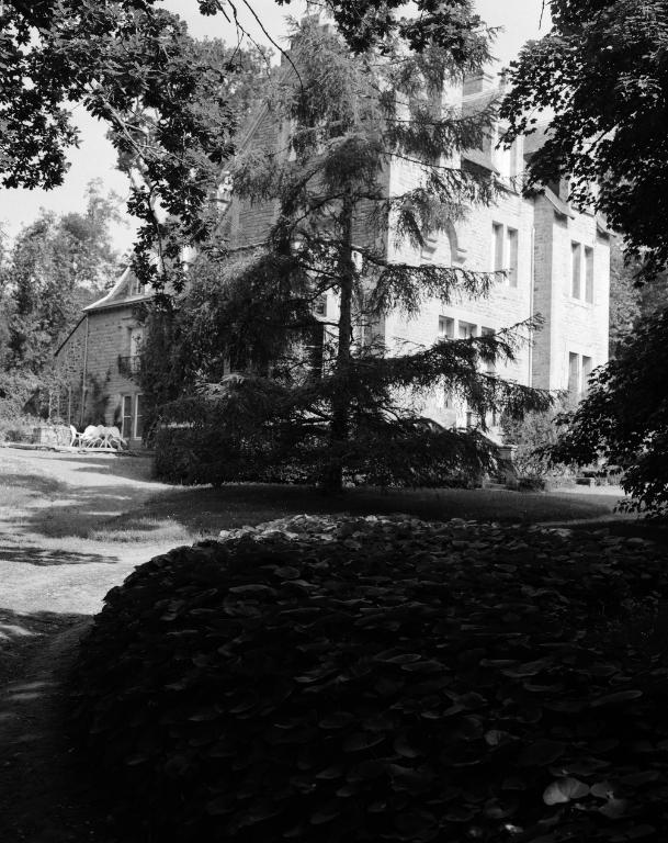 Typologiesmanoir à plan complexe, pignon à redents, bow window, cheminée sur gouttereau, tour d'escalier antérieure, tour d'escalier postérieure ; restauration. Gothique anglais