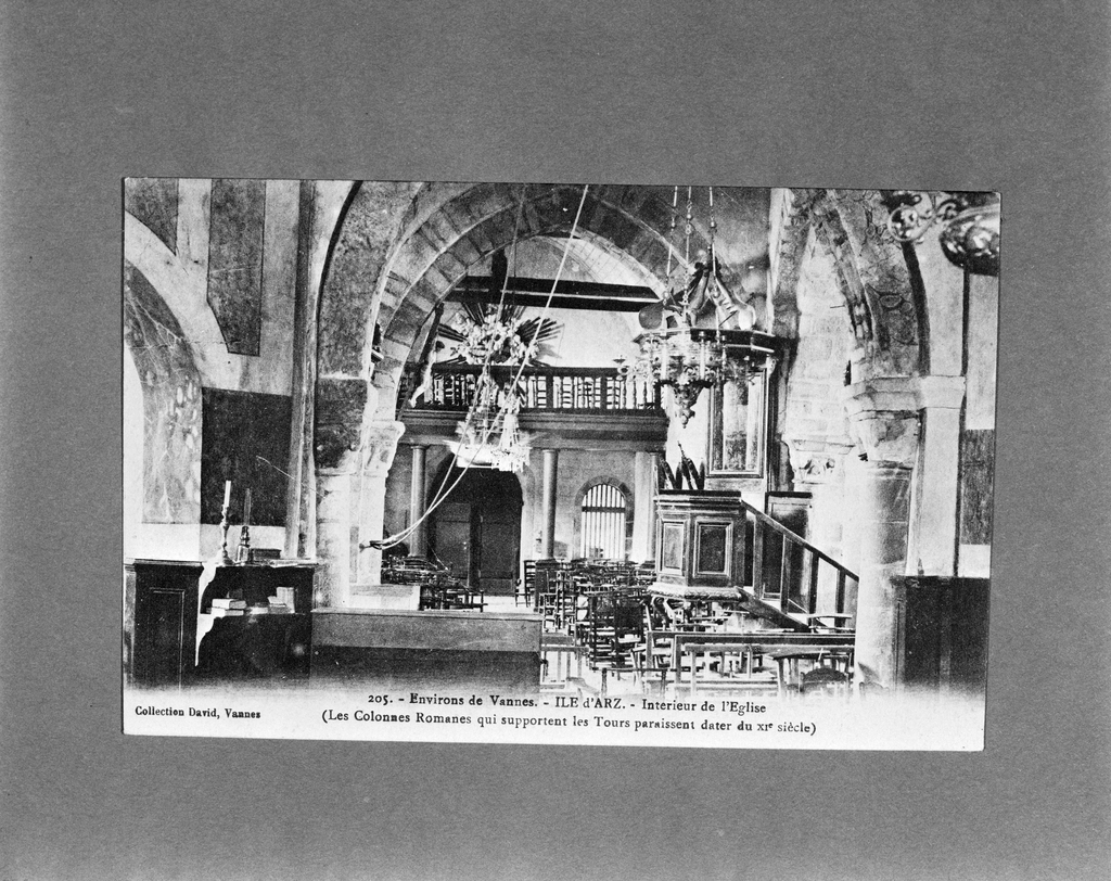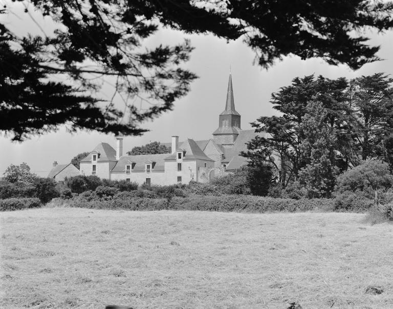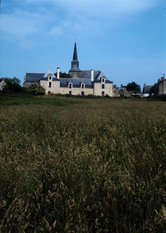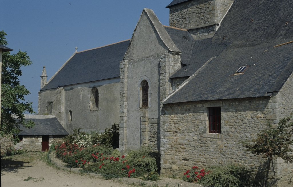 Prieuré fondé par le duc Geoffroy Ier ; il dépendait de l' abbaye saint Gildas de Rhuys. Eglise construite à la fin du 11e siècle, dont subsistent la partie est des murs de la nef, le croisillon sud et peut-être le croisillon nord. Croisée du transept datant de la fin du 12e ou du début du 13e siècle. A la fin du 14e siècle et au début du 15e siècle, la charpente de la nef est refaite et l' élévation ouest reconstruite : les inscriptions sur les sablières de la nef "l' an 1396 cette église fut (couverte ?) par Johan Pierrs, charpentier d' arty et l' an 1412, cette église fut close par Johan Piers "ont en partie disparu. Choeur construit peu avant 1553 d' après l' inscription portée sur les sablières du choeur "l' an 1553, le 23e jour d' avril fut commencé le bois (la charpente) de ce choeur, P. de Vannes étant miseur". Bras nord doublé vers l' ouest probablement au 17e siècle . Bras nord et sud agrandis vers l' ouest (avec enfeus ?) au 18e siècle, fenêtres ouvertes dans les murs nord et sud à cette époque. Sacristie datée 1836, date portée sur le linteau de la fenêtre. Nef allongée vers l' ouest en 1844. Fenêtres de l' étage agrandies à la fin du 19e siècle. Logis prioral construit dans la seconde moitié du 17e siècle. Racheté par la commune vers 1980, le logis prioral est transformé en mairie école. Croix de cimetière datant du 19e siècle.