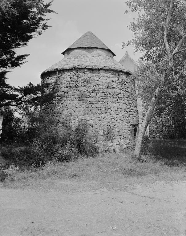 Logis en pierre de taille, à un étage carré et comble simple, élévation à une travée, toit à longs pans à pignon découvert. Communs en alignement en pierre de taille, à comble à surcroît, couvert d'un toit à longs pans à pignon découvert. Tour d'angle en moellon, couverte d'un toit en appentis. Colombier de plan circulaire en moellon, avec granite en couverture, lanternon couvert en ardoise d'un toit polygonal. Communs au sud en moellon, à comble à surcroît, couvert d'un toit à longs pans à pignon découvert..