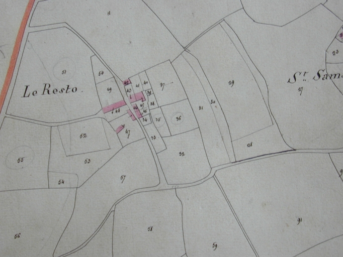 Ferme datant probablement du 1er quart du 19e siècle (elle figure sur le plan cadastral de 1828). La date de 1816 est portée sur le piédroit de la porte du fournil en alignement du logis. Le puits peut être contemporain. Le plan cadastral de 1828 montre deux bâtiments alignés au nord aujourd'hui disparus : avec le logis subsistant, ils constituaient peut-être la ferme.