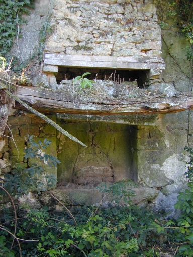 Tête humaine sculptée à côté de la date (piédroit de la porte du fournil) et sur les montants du puits. Fleuron également sur les montants du puits.