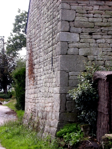 Ferme en moellon régulier de granite regroupant deux logis et une étable en alignement, suivant le schéma classique dans la région : logis à étage associé en alignement avec un logis-étable bas. Dans le logis à étage habitable sur dépendance, la distribution de la pièce haute était assurée par un escalier extérieur en pierre droit (disparu, trace visible). On constate un épais fruit à la base du mur pignon est. Le logis-étable en rez-de-chaussée est surmonté d'un comble à surcroît.