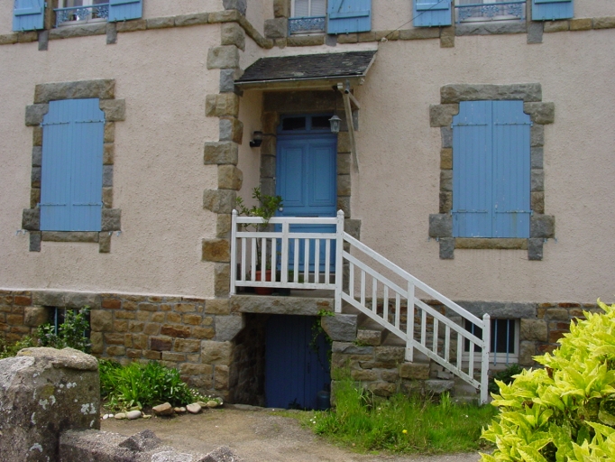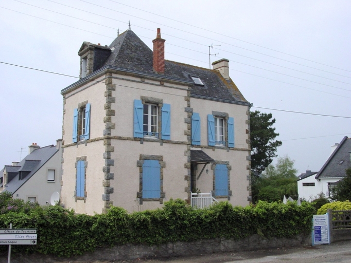 Maison orientée à l'est, construite en retrait de la parcelle, implantation ménageant un petit jardin antérieur. De plan en L, avec cage d'escalier postérieure légèrement saillante sur façade antérieure ouest. Des dépendances en appentis sur la façade antérieure ont été récemment détruites. Elévation à RDC surélevé sur cave dont la porte est placée sous l'escalier extérieur de l'entrée principale. Modénature de style régional de l'entre-deux-guerres. La toiture de l'aile sud est en pavillon à coyau. Chaînes d'angles, bandeaux d'étage, entourages des baies, corniche et lucarne sud sont en pierres de taille de granite blond et bleu.