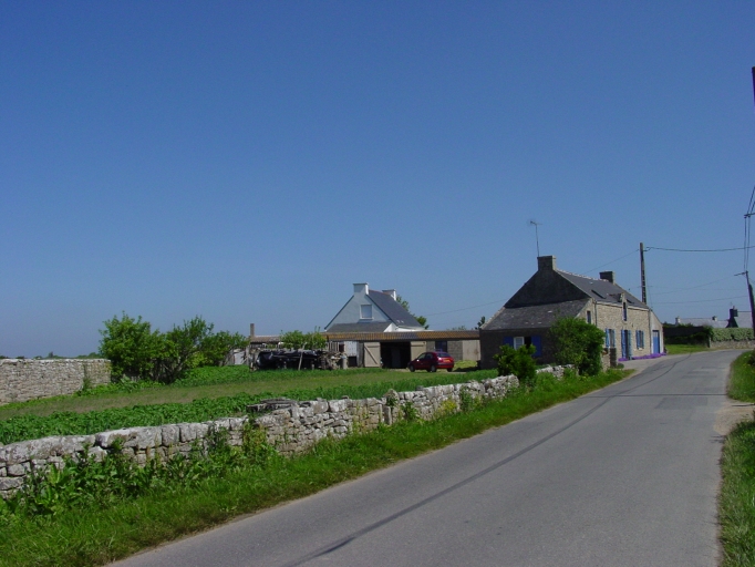 Petite ferme construite à l'alignement de la voie sur une parcelle cernée d'un muret ancien. Elle comprend un logis à deux pièces symétriques et une étable en appentis au sud. Le garage à voiture remplace peut-être un second appentis. Façade dont les ouvertures symétriques ont des entourages en pierre de taille. L'enduit a disparu. La lucarne à fronton triangulaire est aussi en pierre de taille.