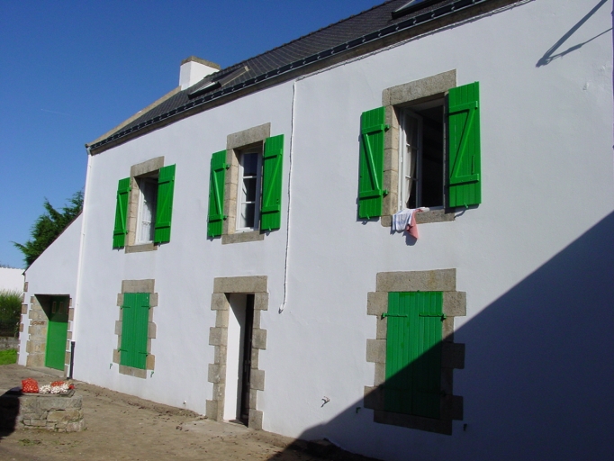 Maison construite en retrait de la voie, exposée au sud car alignée au nord d'une courette antérieure. Le puits commun est détruit. Maison de plan allongé avec appentis en alignement, transformé en garage. Elévation de type ternaire. Ouverture en pignon vers la route, dont une porte haute pour le comble.