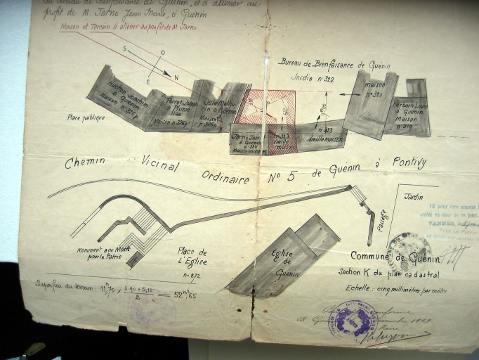Entre le cadastre ancien de 1828 et le cadastre moderne (1963 et 1987), la structure du village demeure globalement identique. Autour de deux grands axes cependant, la rue du Manéguen d'une part et les rues du Manoir et du Menhir d'autre part, l'habitat se densifie. Notons également que le presbytère n'est pas à proximité immédiate de l'église paroissiale mais plutôt à l'extérieur du bourg. C'est un phénomène fréquemment observé dans les communes du Morbihan.