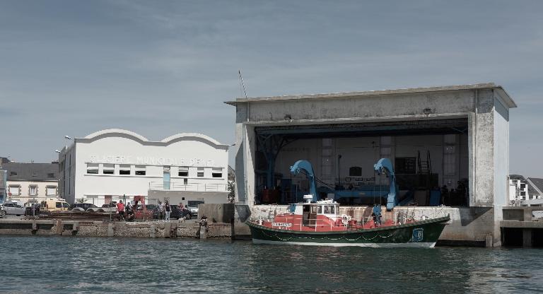 La station de sauvetage d'Etel est créée en 1866, sous la houlette de la Société centrale de sauvetage des naufragés. Sur un plan du port daté de 1884, figure le premier abri pour canot de sauvetage, construit sur un quai au nord du bassin d'échouage (AD56, S 169). La cale de lancement sera allongée en 1894. Un deuxième abri reconstruit sur la même rive mais plus à l'ouest est achevé en 1939. C'est un édifice en béton armé fondé sur poteaux et doté d'une rampe à glissières métalliques. Il est l'oeuvre de l'entreprise Limousin de Paris qui en fournit les plans (AD56, S 3077, plans). Enfin en 1962 est achevé le troisième abri de la station doté d'un système particulier de mise à l'eau latérale par bossoirs. De fait il est implanté en un nouvel emplacement, sur les quais bordant la rivière d'Etel.