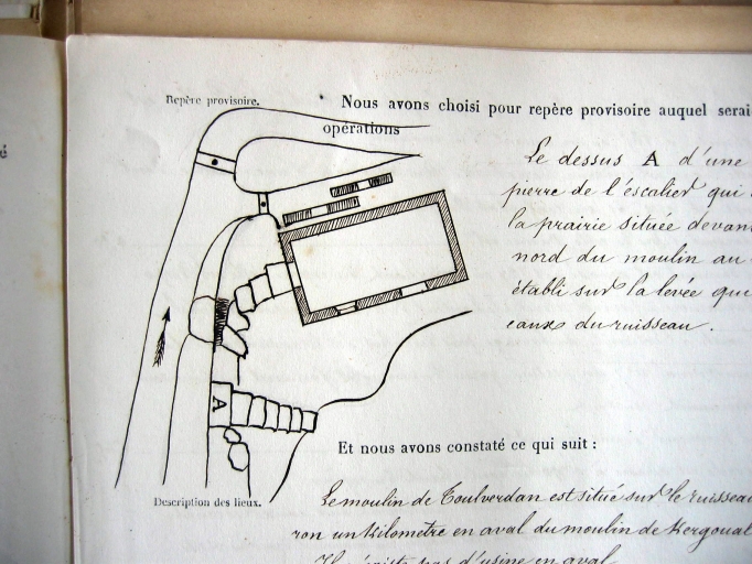 AD Morbihan, série S. Cours d'eau. S 1911. 21 octobre 1857. Moulin de Toulverdan. Règlement d'eau.