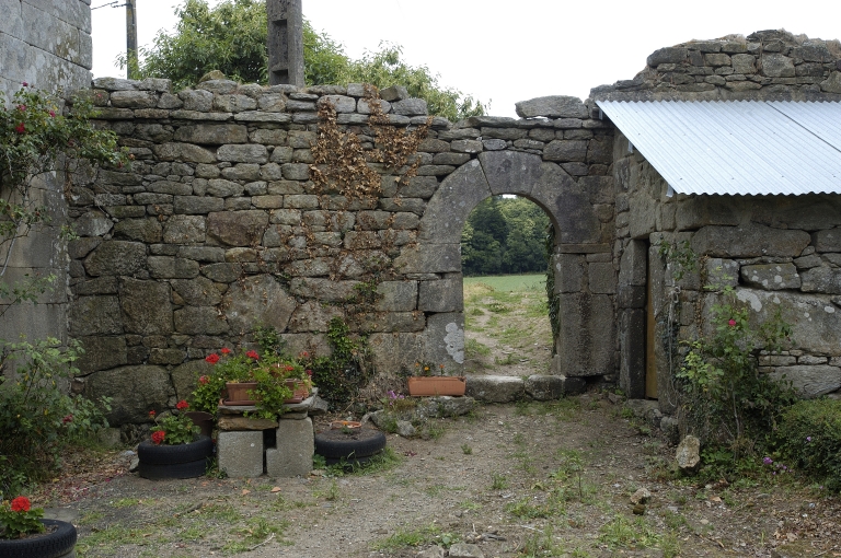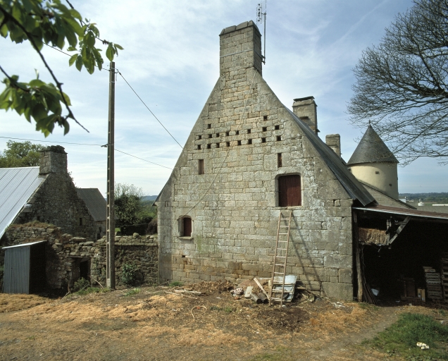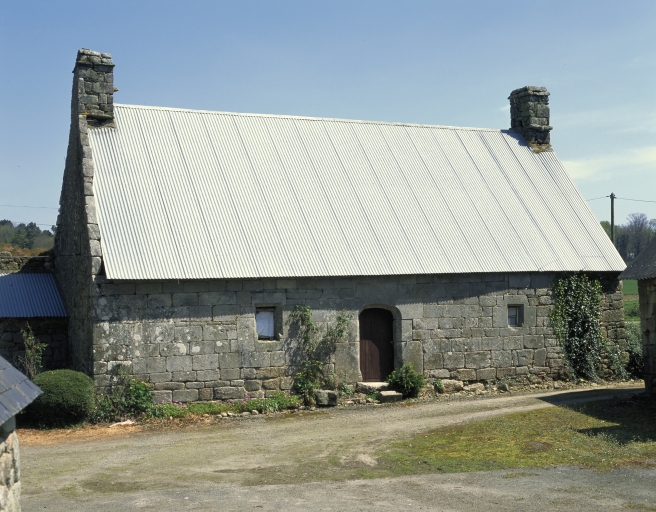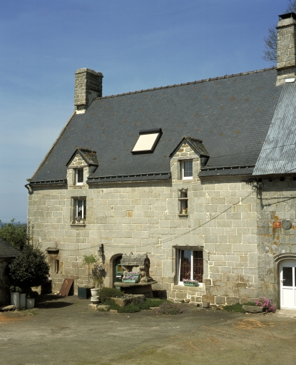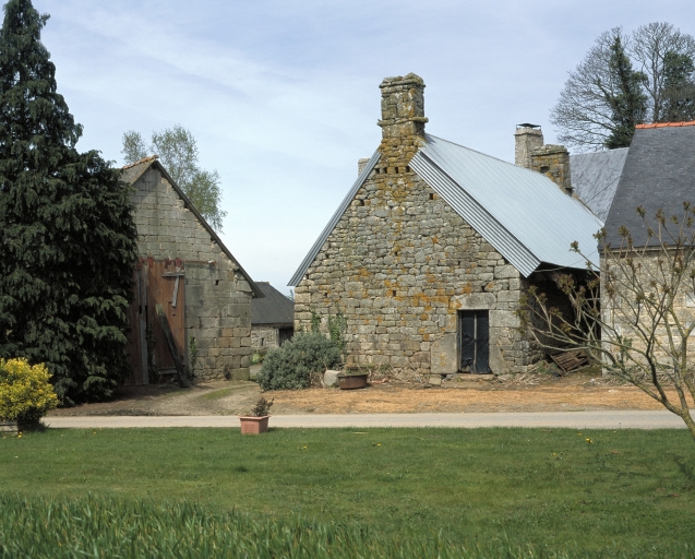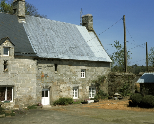 Ferme à orientation principale sud. Logis à structure complexe en pierre de taille de granite, à étage carré desservi par un escalier en vis en pierre en hors-oeuvre. Le logis est divisé en deux : une partie logis à l'ouest, une partie dépendance à l'est. Le rez-de-chaussée du logis est lui-même divisé en deux par un mur de refends, avec étable à l'ouest et salle à l'est du mur de refends, celui-ci étant percé de niches, placard mural et autres mangeoires-auges traversantes. A l'étage, chambre avec cheminée et accès par la tour d'escalier à des latrines. La partie est comporte au pignon une cheminée ancienne à piédroits à colonnettes peut-être remployée. Des trous de boulins sont ménagés dans le pignon est, ainsi qu'une porte haute desservant le grenier autrefois accessible par un escalier extérieur droit en pierre. L'étage du logis comportait une seule chambre avec cheminée au pignon ouest. Côté est de la cour enclose, une dépendance en pierre de taille en rez-de-chaussée adopte le type logis étable, sans séparation intérieure avec cheminée au pignon nord et fausse souche au pignon sud ; une porte en pignon sud donne accès à l'étable. Une dépendance à usage de charretterie et peut-être d'étable ferme la cour au sud ; couverte en tôle elle est en pierre de taille, en rez-de-chaussée, avec ouverture à porte charretière en pignon est. Le fournil en moellon est adossé au mur d'enclos à l'ouest. Puits en pierre de taille circulaire à montants ornés de têtes et traverse ornée de boules. L'aire à battre, limitée par un muret au nord et à l'ouest pouvait être située à l'est du grand logis.