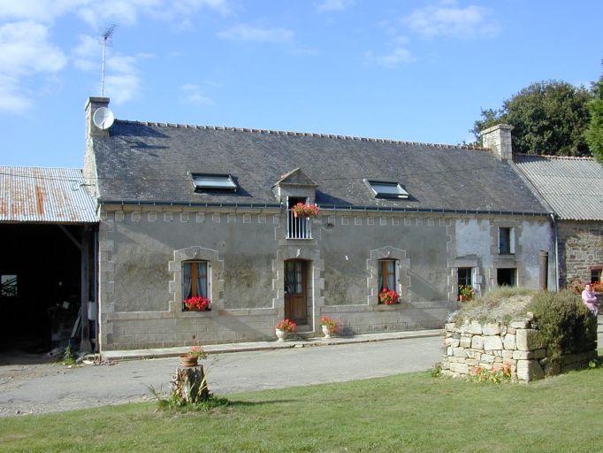 Ferme de type logis étable à deux portes en forme de logis double. La nouvelle partie en alignement à l'ouest est enduite avec base en pierre de taille, corniche à modillon. Elle est constituée d'un logis à deux pièces symétriques, associé à une écurie traitée de manière identique, seule la lucarne étant remplacée par une fenêtre-gerbière. Petit four à pain en moellon de plan carré.