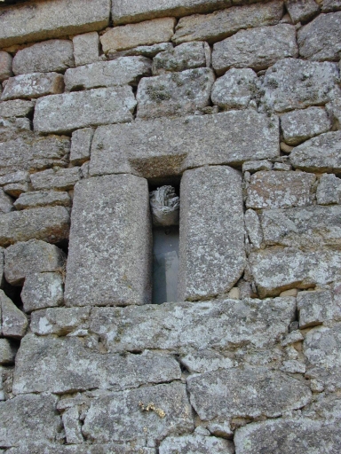 Montants du puits sculptés de têtes humaines.