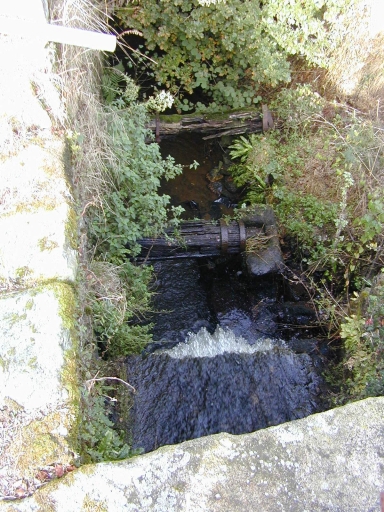 La retenue forme un étang au sud du moulin. Le moulin est établi perpendiculairement à la chute d'eau. Il est constitué d'un bâtiment en rez-de-chaussée en moellon de schiste, couvert en ardoise à croupe. Une seule roue est établie sur le pignon. En prolongement vers l'ouest, logis en moellon à deux pièces surmontées d'un comble à surcroît.