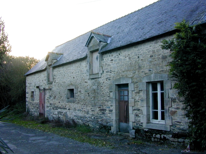 Ferme en moellon de schiste (remployé) et de granite, constituée d'un logis à pièce unique, en alignement avec une étable à fenêtres allongées.