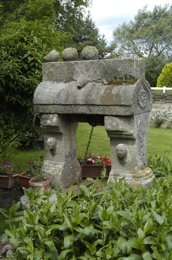 Tête d'angelot sculptée sur la traverse et les montants du puits.